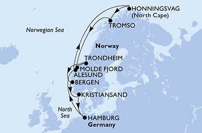 Маршрут круиза: Фор-де-Франс, о. Мартиника - Пуант-а-Питр, о. Гваделупа - Филипсбург, о. Синт-Мартен - море - море - море - море - море - Понта-Делгада, о.Сан-Мигел - море - море - море - море - Гамбург - море - Гавр / Париж - Саутгемптон / Лондон