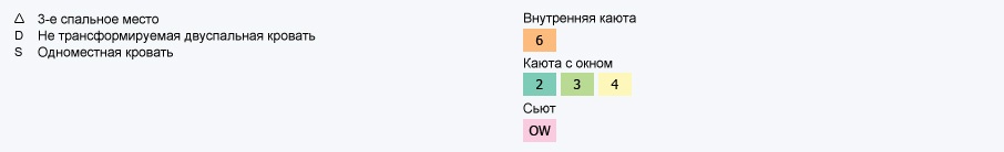 Основной ресторан на 250 мест, расположенный на 3-х уровнях. Завртрак и обед - шведский стол; ужин - по меню. Есть зоны для курящих и некурящих пассажиров.