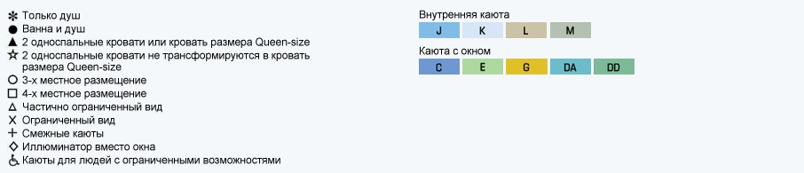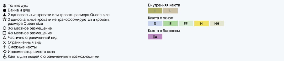 - 2 односпальные кровати, трансформируемые в кровать размера queen-size (Во всех каютах категории FF есть диван-кровать и пульман)