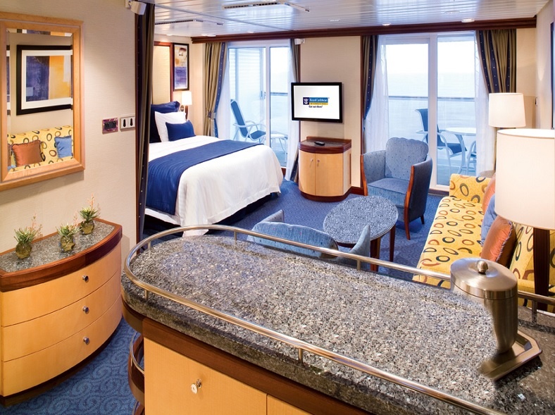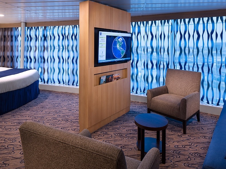 Эти роскошные каюты имеют зону отдыха и частный балкон. Две односпальные кровати трансформируются в двуспальную кровать Royal King, зона отдыха с диваном-кроватью, частный балкон и ванную комнату. Туалетный столик с рабочей поверхностью для ноутбука.