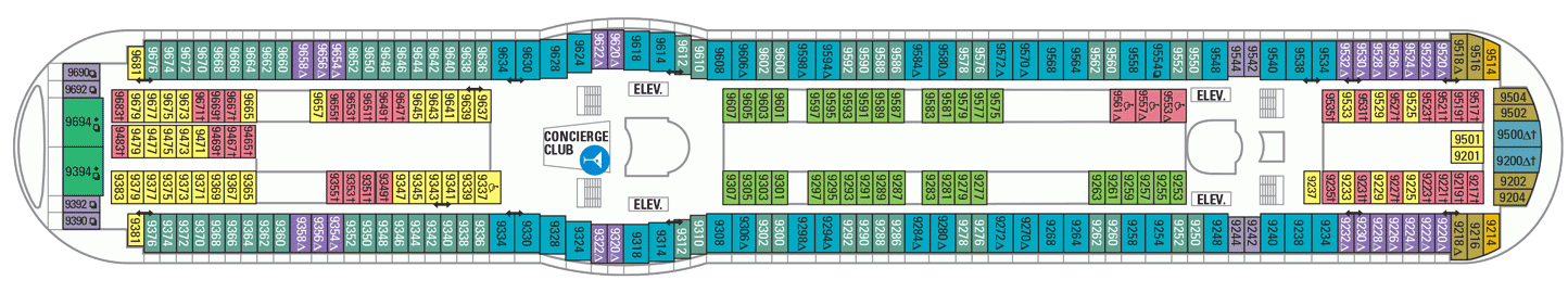 Эти роскошные каюты имеют зону отдыха и частный балкон. Две односпальные кровати трансформируются в двуспальную кровать Royal King, зона отдыха (в некоторых каютах с диваном-кроватью), частный балкон и ванную комнату. Туалетный столик с рабочей поверхностью для нотбука.