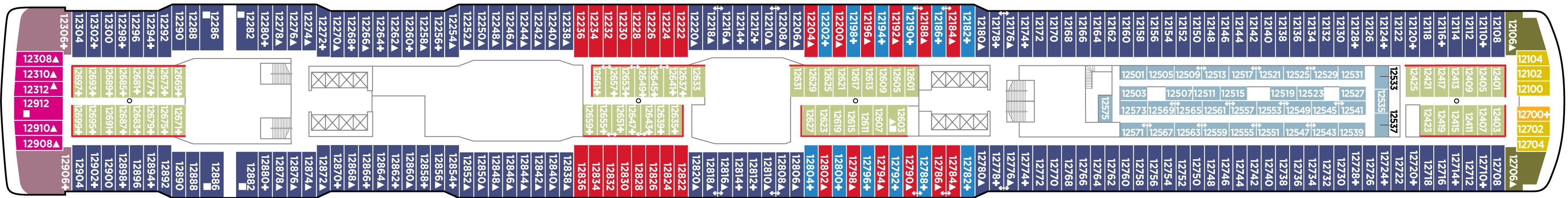 Ваша каюта будет с балконом или категорией выше! Она может быть расположена на любой палубе, номер каюты будет известен за один день до отплытия. Пожалуйста, имейте ввиду, что вид с балкона может быть полностью или частично ограничен.