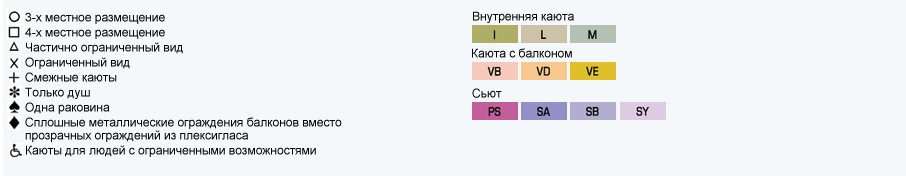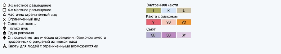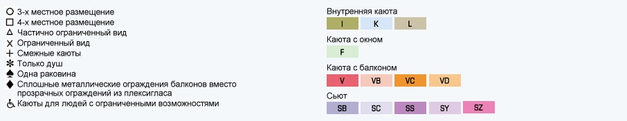 Примечание: каюты могут быть стандартного размера или увеличенного