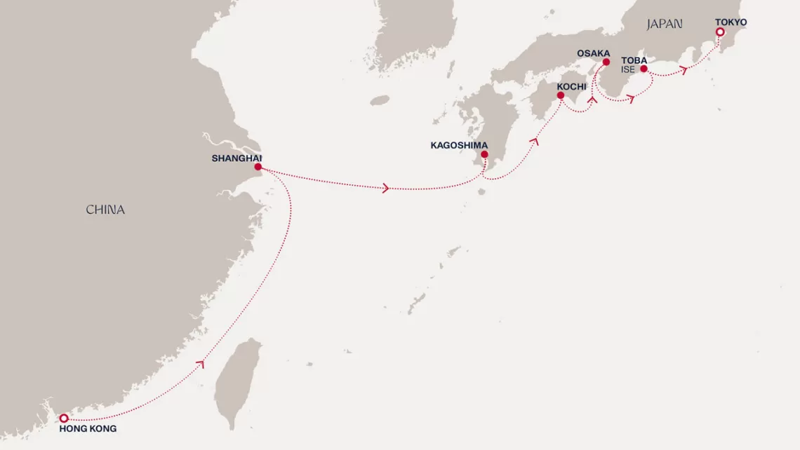 Маршрут круиза: Токио - Кобе - Кобе - Кобе - Коти - Коти - Хиросима - Беппу - море - Наха - Мияко - Цзилун - море - Кагосима - море - Токио