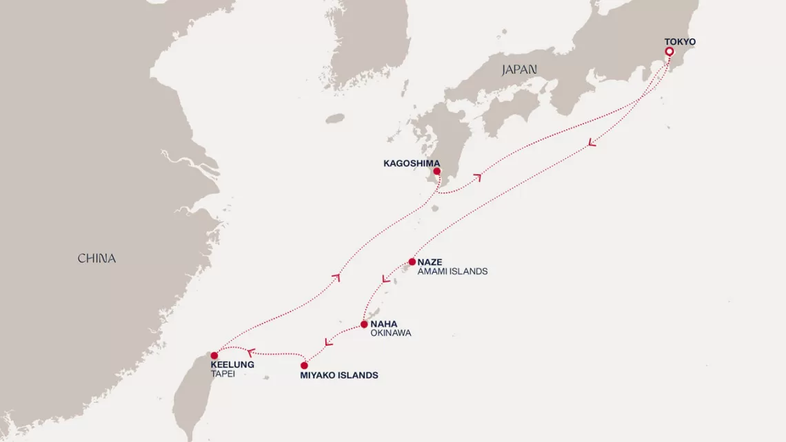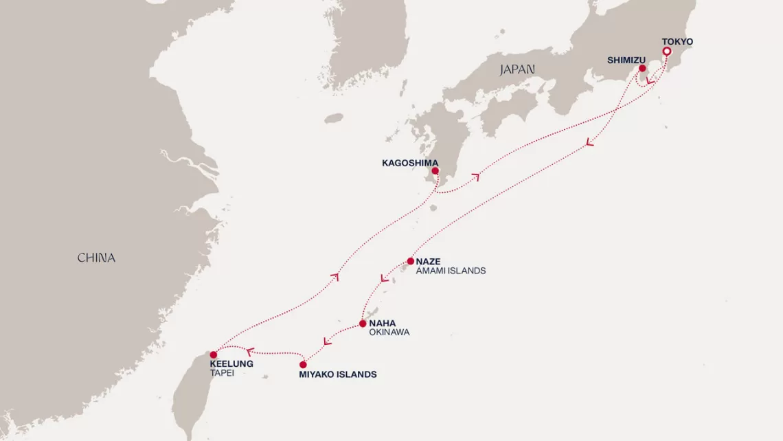 Маршрут круиза: Осака - море - о. Амамиосима - Ихея - о. Замами - о. Кумедзима - Миякодзима - Такэтомидзима - остров Ириомоте - о. Йонагуни - Цзилун - Исигаки, о-ва Сакисима