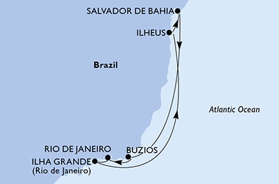 Маршрут морского круиза Южная Америка на MSC Orchestra с 08.02.2025 на 7 ночей