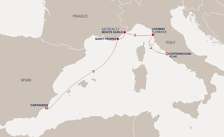 Маршрут круиза: Генуя / Милан - Чивитавеккья / Рим - Палермо, о. Сицилия - море - о. Ибица - Барселона - Марсель - Генуя / Милан